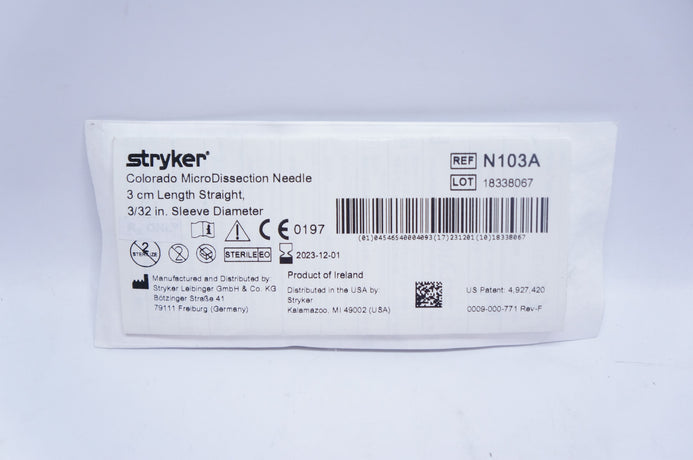 - Stryker N103A Colorado MicroDissection Needle 3cm x 3/32inch Sleeve Diameter (x)