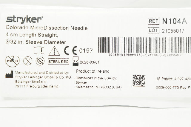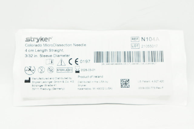 - Stryker N104A Colorado MicroDissection Ndle. Straight 4cm, Sleeve 3/32inch