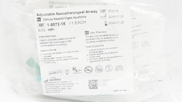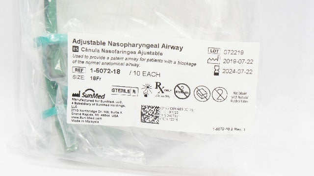 SunMed 1-5072-18 Adjustable Nasopharyngeal Airway 18Fr - Pack of 3