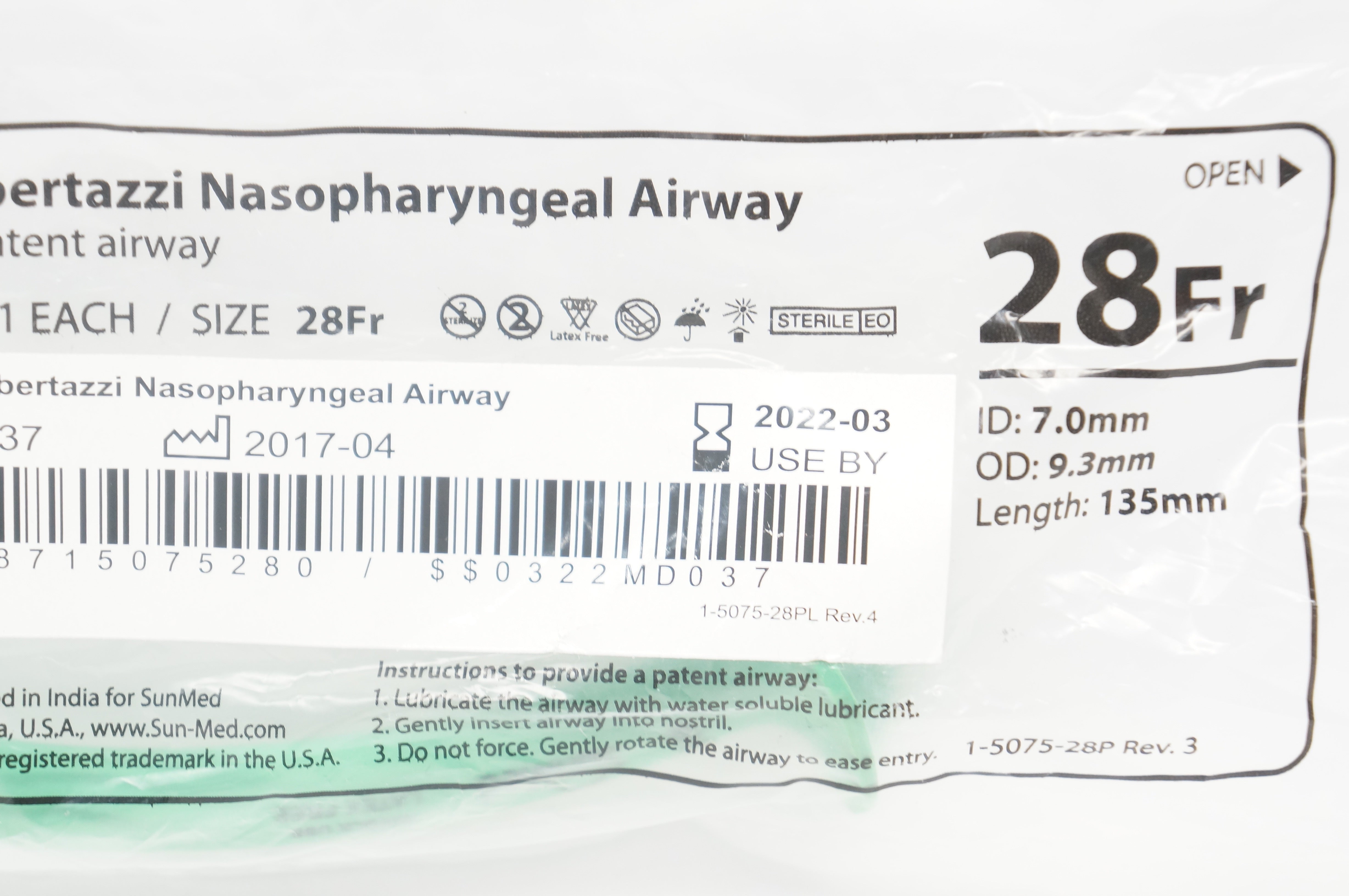 - SunMed 1-5075-28 Robertazzi Nasopharyngeal Airway 28Fr 7.0mm ID x 9.3mm OD (x)
