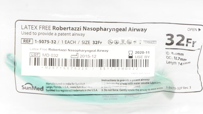 - SunMed 1-5075-32 Robertazzi Nasopharyngeal Airway 32Fr x 8.0mm ID x 10.7mm OD(x)