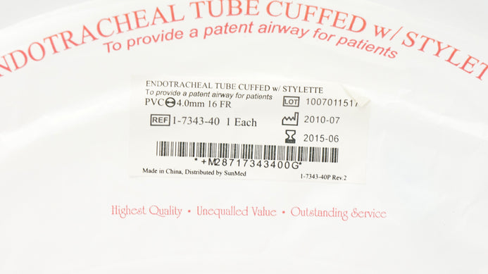 - SunMed 1-7343-40 Endotracheal Tube Cuffed W/Stylette 4.0mm 16Fr (x)