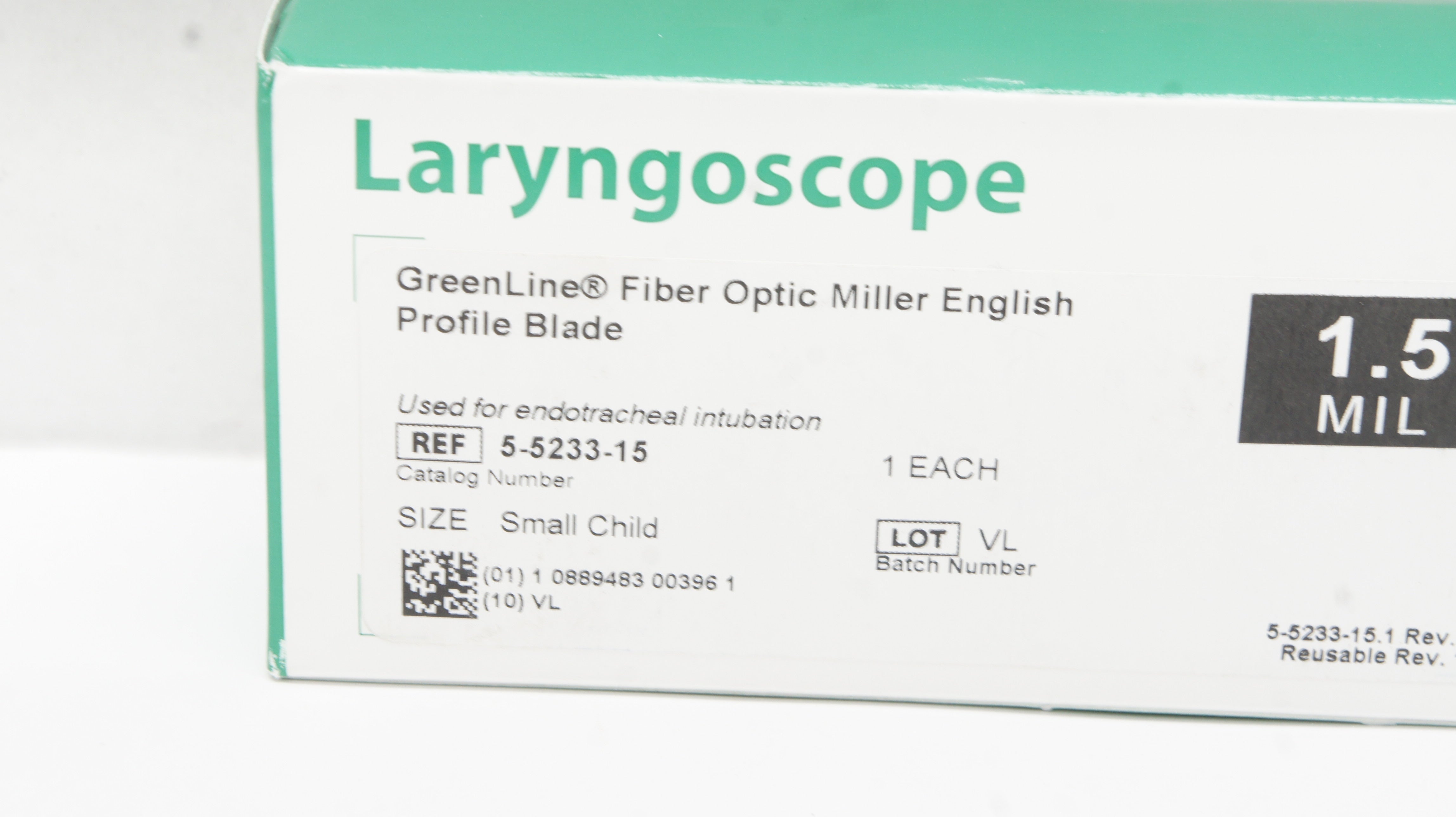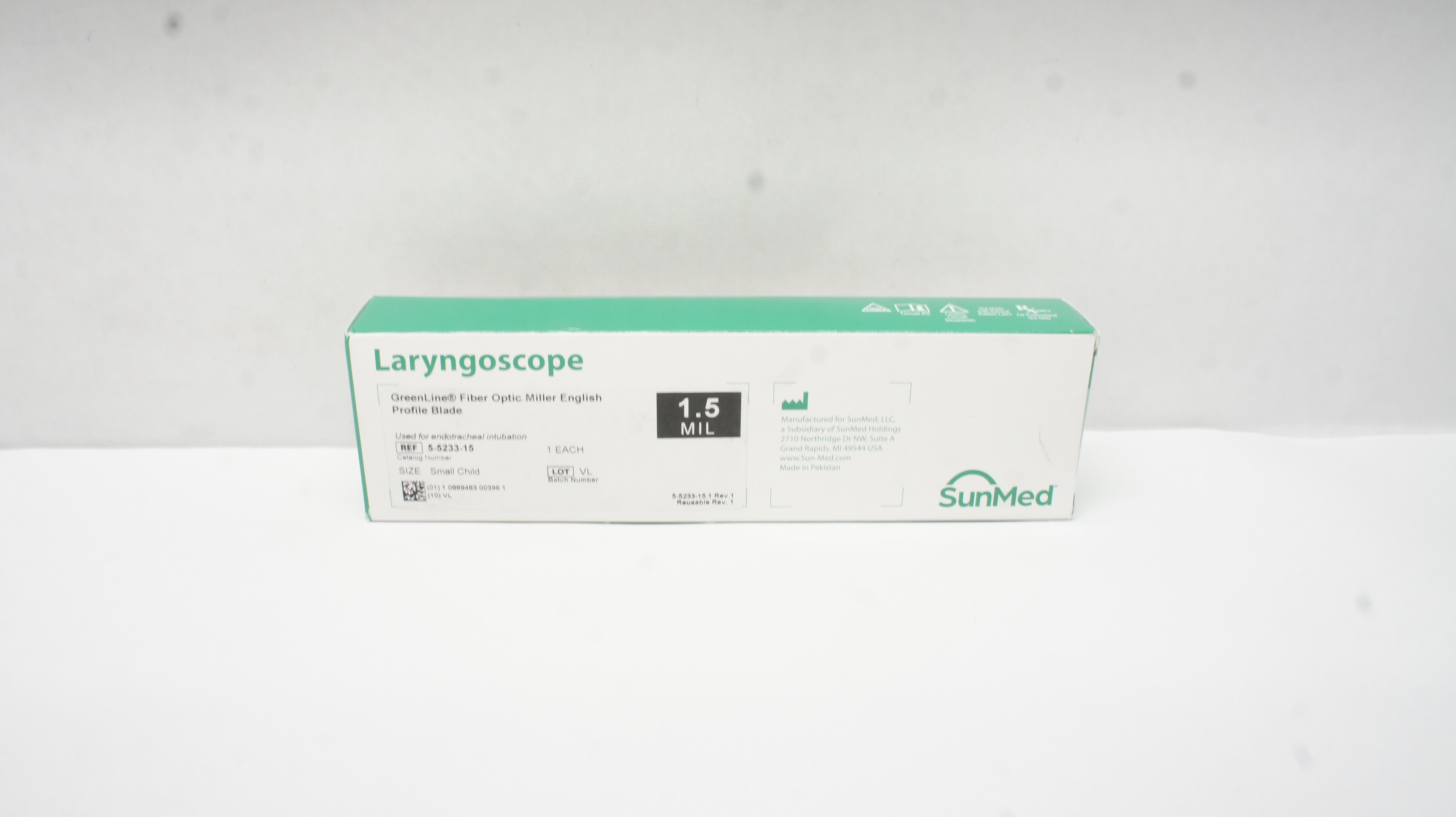 SunMed 5-5233-15 Laryngoscope GreenLine Fiber Optic Blade Mill1.5