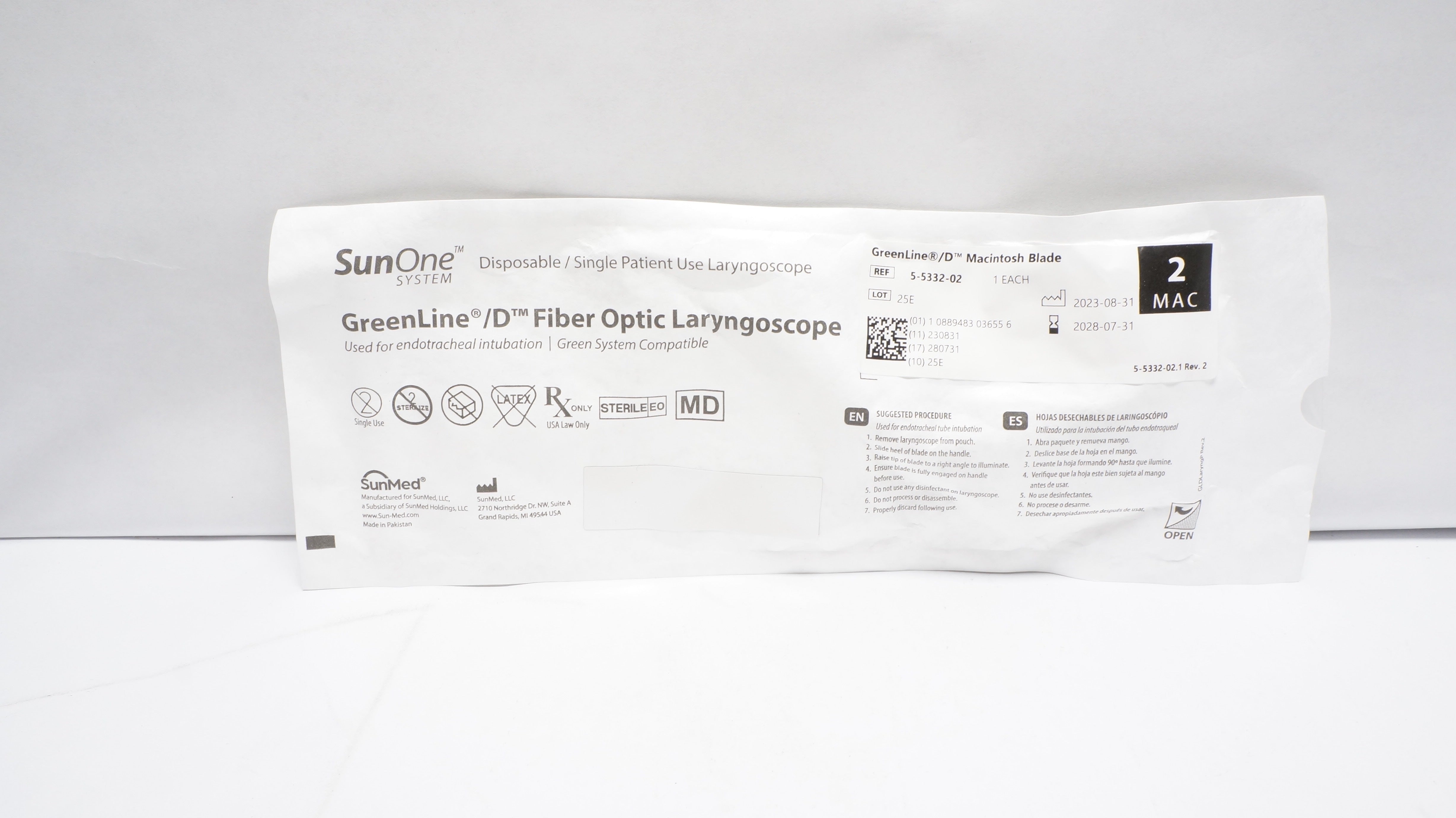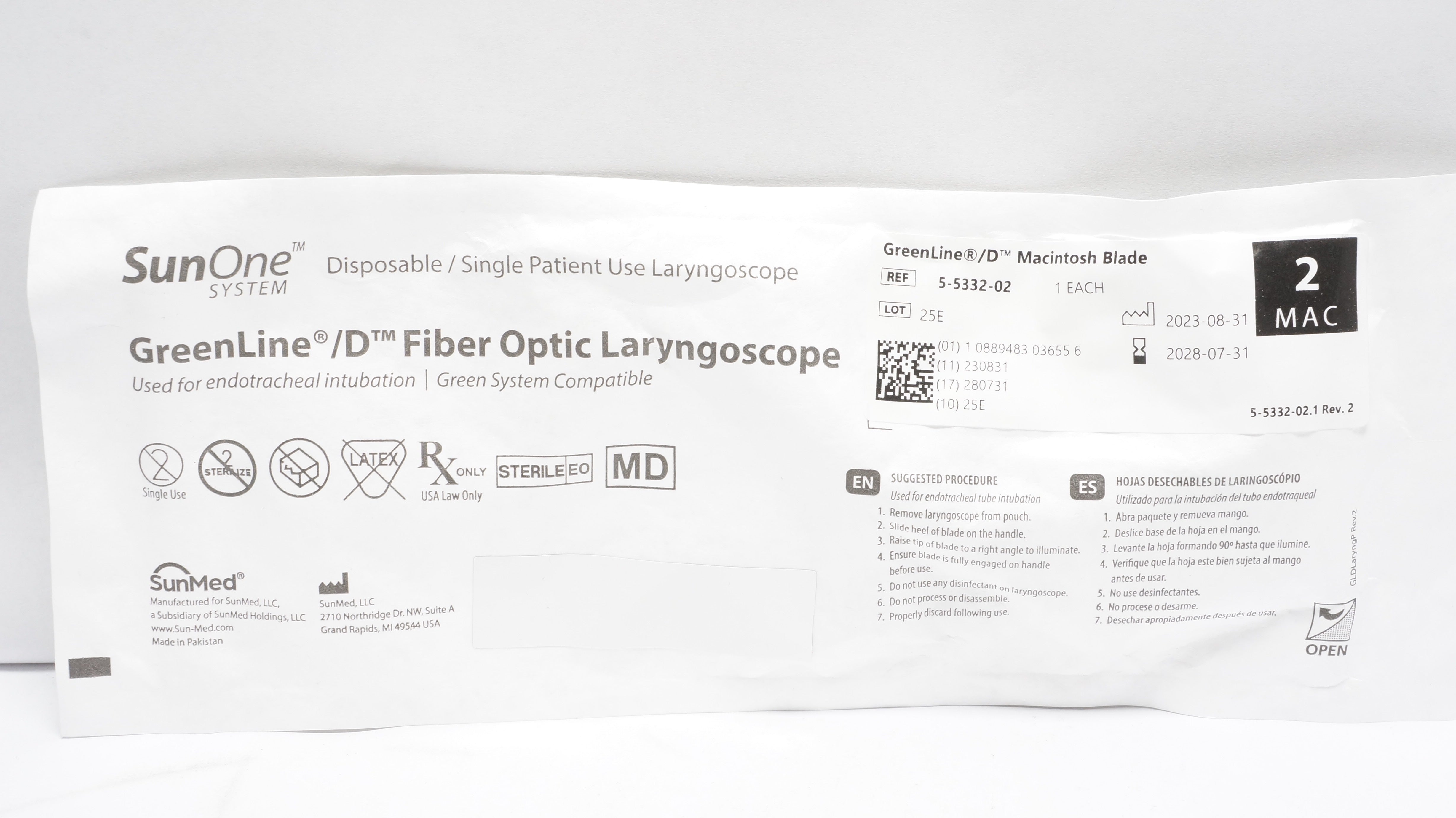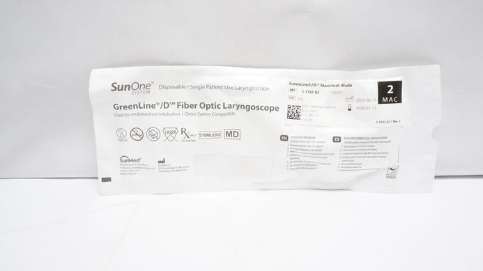 - SunMed 5-5332-02 GreenLine/D Fiber Optic Laryngoscope, Blade Size 2 MAC