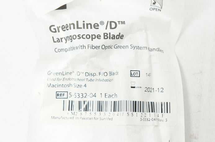 - SunMed 5-5332-04 GreenLine D Fiber Optic Laryngoscope Macintosh Size 4 (x)