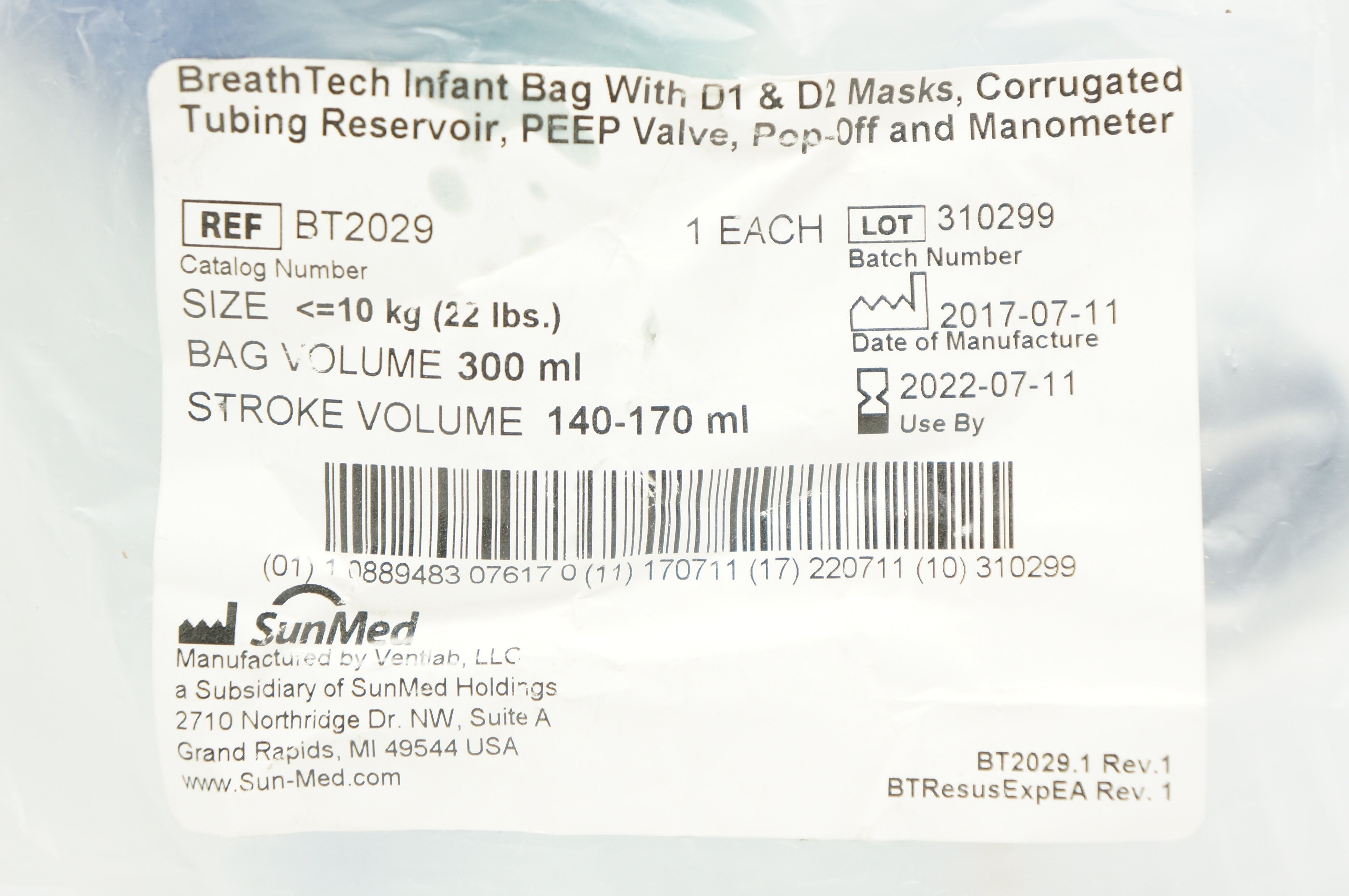 - SunMed BT2029 Breath Tech Infant Bag, Size <= 22lbs, Volume 300mL