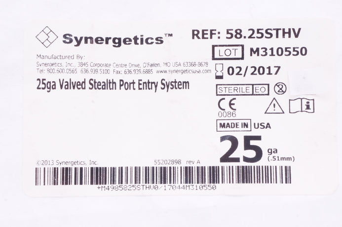 - Synergetics 58.25STHV 25ga Valved Stealth Port Entry System (x)