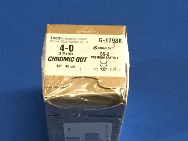 Syneture G-1798K Chromic Gut Premium Spatula SS-2 4-0 18” (x) ~ Box of 12