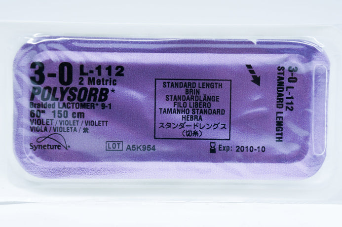 - Syneture L-112 3-0 POLYSORB, Braided Lactomer 9-1, 60inch (x) - Lot of 36