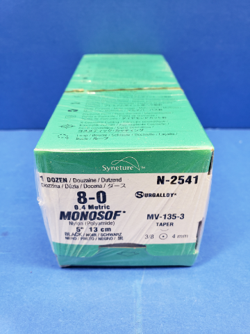 Syneture N-2541 8-0 MONOSOF, SURGALLOY, MV-135-3 Taper, 3/8 4mm, 5in. (x) ~ Box of 12