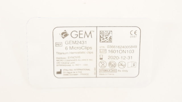Synovis GEM2431 6 MicroClips Titanium Hemostatic Clips