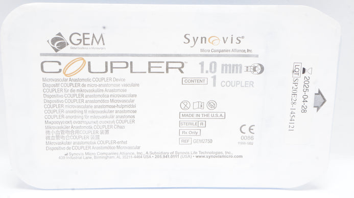 - Synovis GEM2750 Coupler Microvascular Anastomotic Device 1.0mm