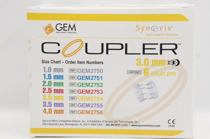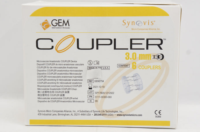 - Synovis GEM2754 GEM Coupler Microvascular Anastomotic Device 3.0 mm - Box of 6