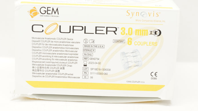 - Synovis GEM2754 GEM Coupler Microvascular Anastomotic Device 3.0mm (x)- Box of 3