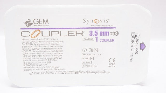 - Synovis GEM2755 GEM Microvascular Anastomotic COUPLER Device 3.5mm