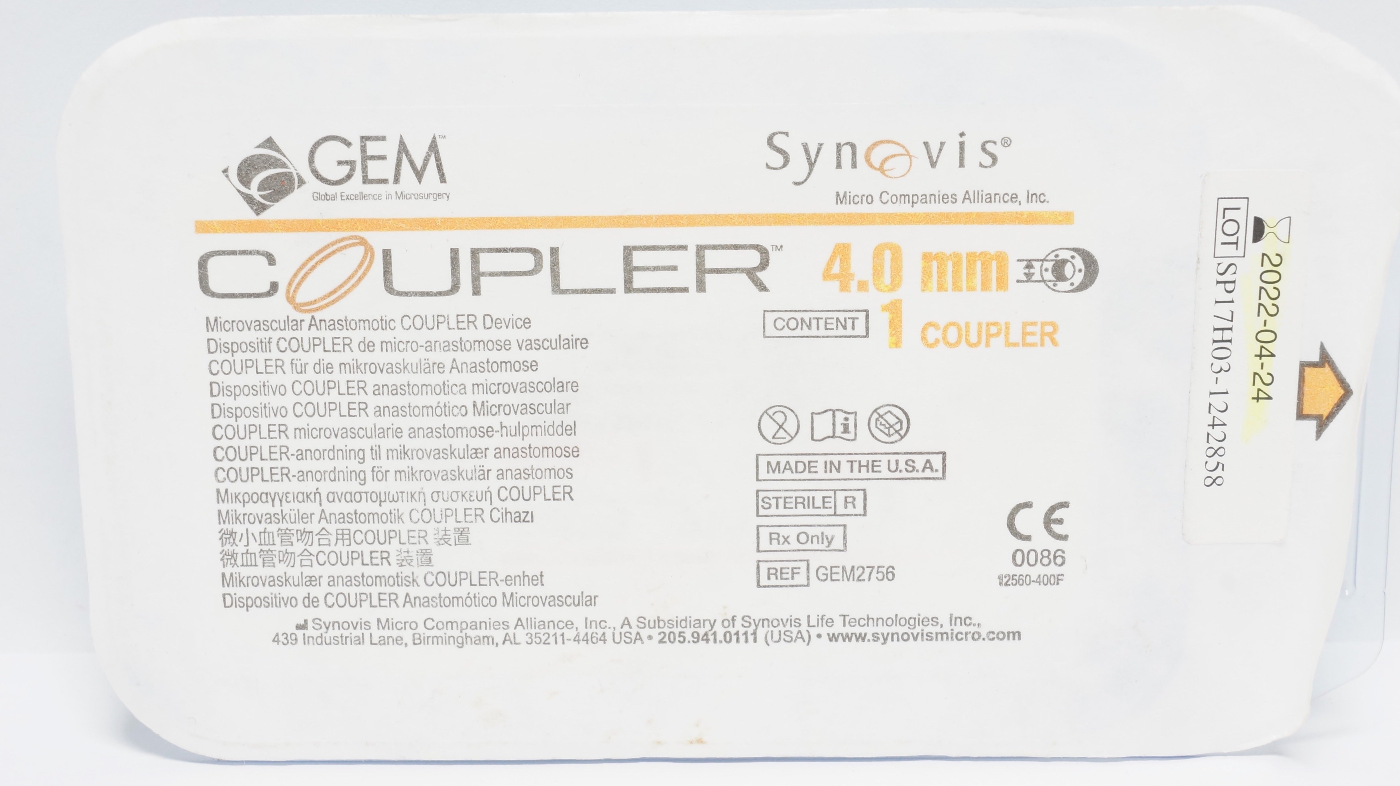 - Synovis GEM2756 Coupler Microvascular Anastomotic Device 4.0mm (x)