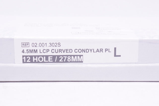 - Synthes 02.001.302S LCP Curved Condylar Plate 4.5mm x 12Hole x 278mm, Left