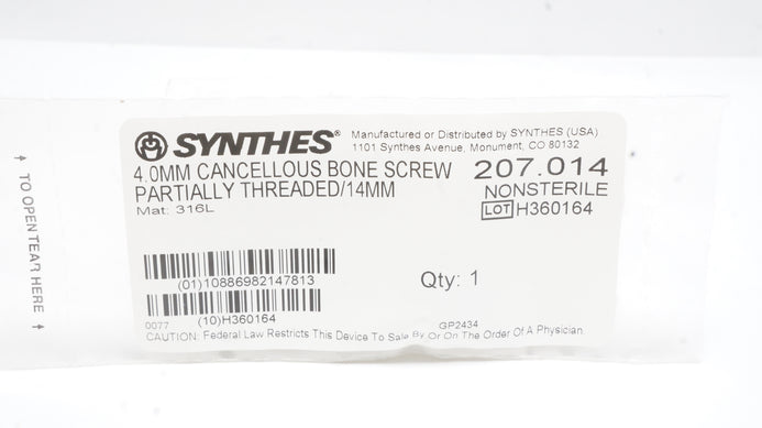 - Synthes 02.204.014 4.0mm Locking Screw Self-Tapping w/T25 Stardrive Recess 14mm