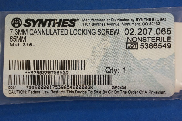 - Synthes 02.207.065 7.3mm Cannulated Locking Screw 65mm