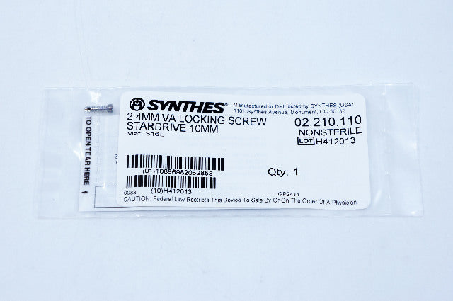 - Synthes 02.210.110 2.4mm VA Locking Screw Stardrive 10mm