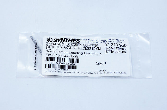 - Synthes 02.210.950 2.4mm Cortex Screw Self-Tapping With T8 Stardrive Recess 50mm