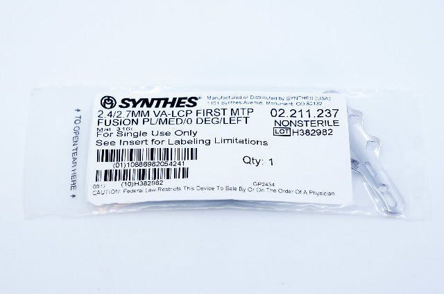 - Synthes 02.211.237 2.4/2.7MM VA-LCP FIRST MTP FUSION PL/MED/0 DEG/LEFT