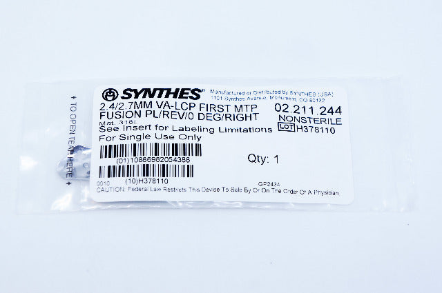 Synthes 02.211.244 2.4/2.7MM VA-LCP FIRST MTP FUSION PL/REV/0 DEG/RIGHT