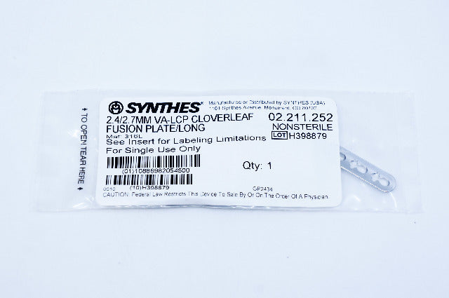 Synthes 02.211.252 2.4/2.7MM VA-LCP CLOVERLEAF FUSION PLATE/LONG