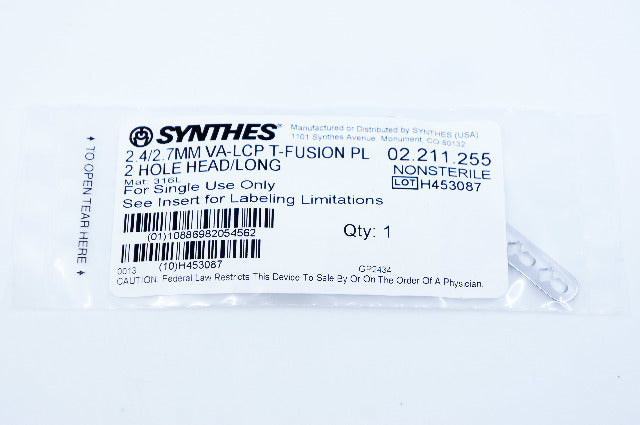 Synthes 02.211.255 2.4/2.7MM VA-LCP T-FUSION PL 2 HOLE HEAD/LONG