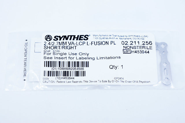 Synthes 02.211.256 2.4/2.7MM VA-LCP FIRST MTP FUSION PL/MED/0 DEG/RIGHT