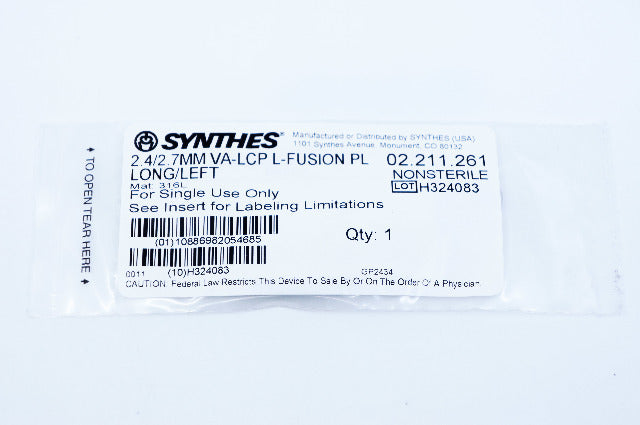 - Synthes 02.211.261 2.4/2.7MM VA-LCP L-FUSION PL LONG/LEFT