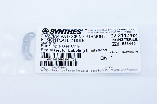 - Synthes 02.211.262 2.4/2.7MM VA-LOCKING STRAIGHT FUSION PLATE/2-HOLE