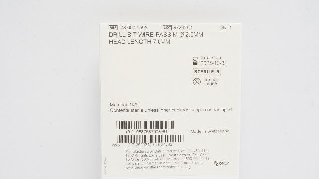 - Synthes 03.000.159S Drill Bit Wire-Pass M 2.0mm Head Length 7.0mm