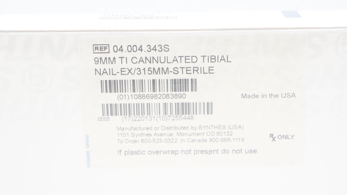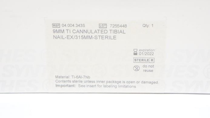 - Synthes 04.004.343S 9mm TI CANNULATED TIBIAL NAIL-EX/315mm-Sterile (x)
