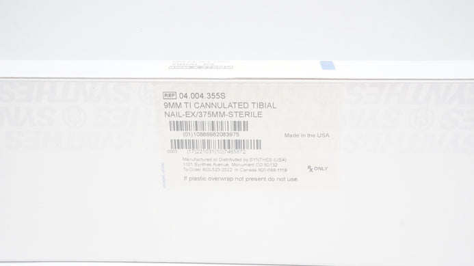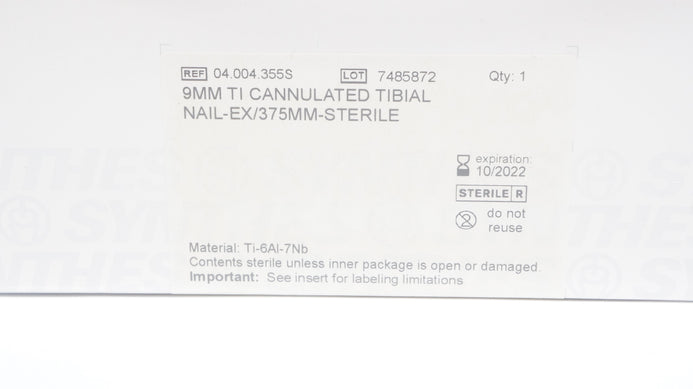 - Synthes 04.004.355S 9 mm TI CANNULATED TIBIAL NAIL-EX/375 mm STERILE (x)