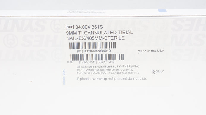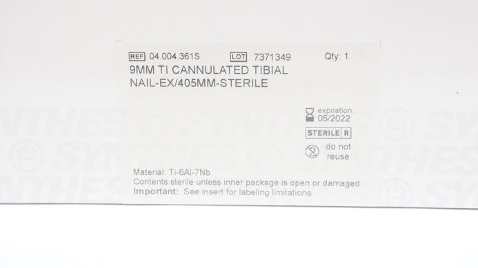 - Synthes 04.004.361S 9 mm TI CANNULATED TIBIAL NAIL-EX/405 mm STERILE (x)