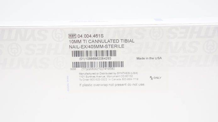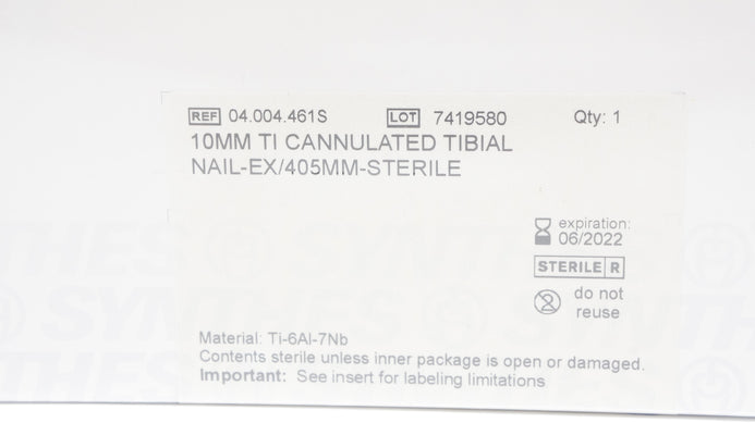 - Synthes 04.004.461S 10mm TI CANNULATED TIBIAL NAIL-EX/405mm-Sterile (x)