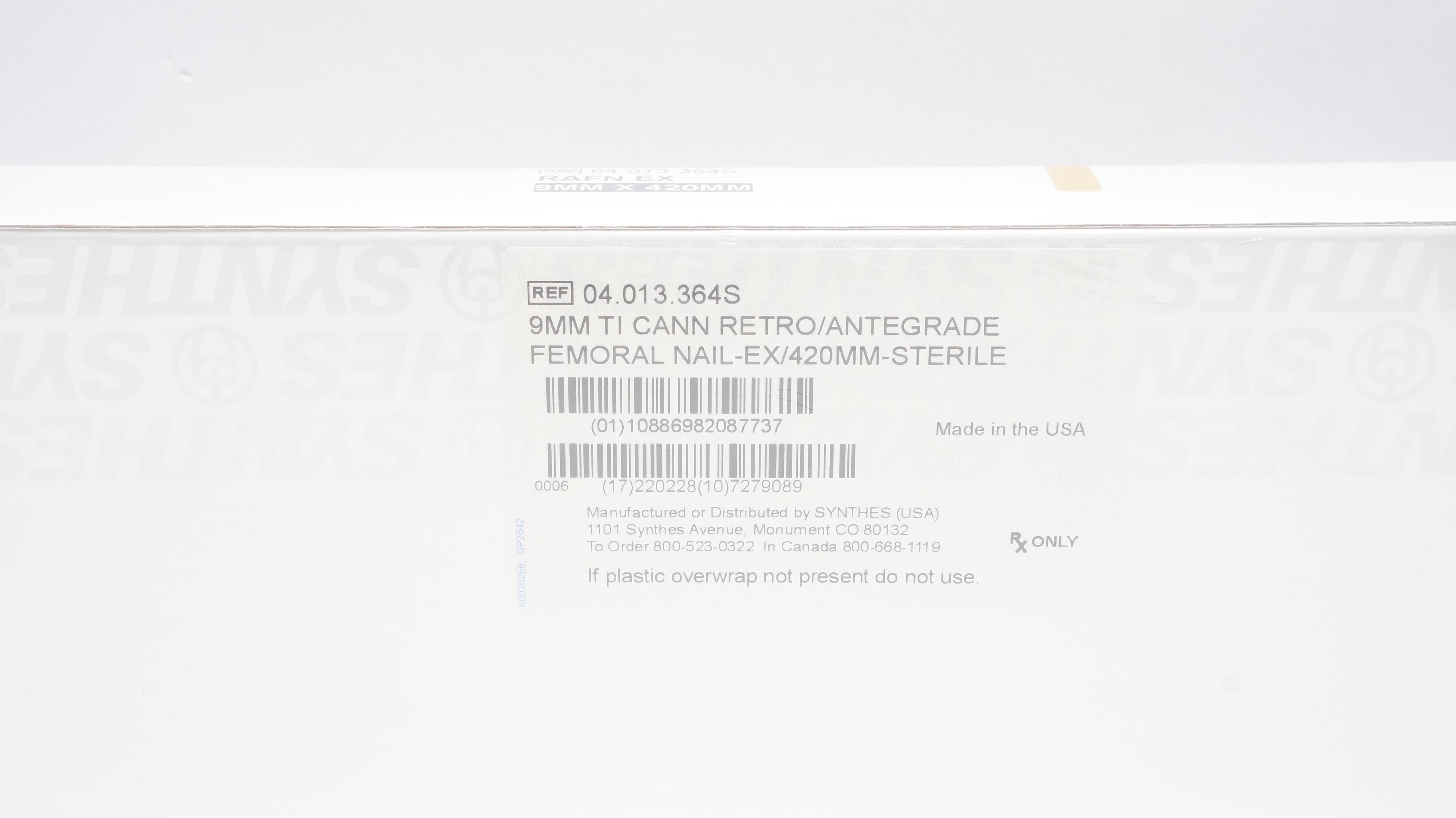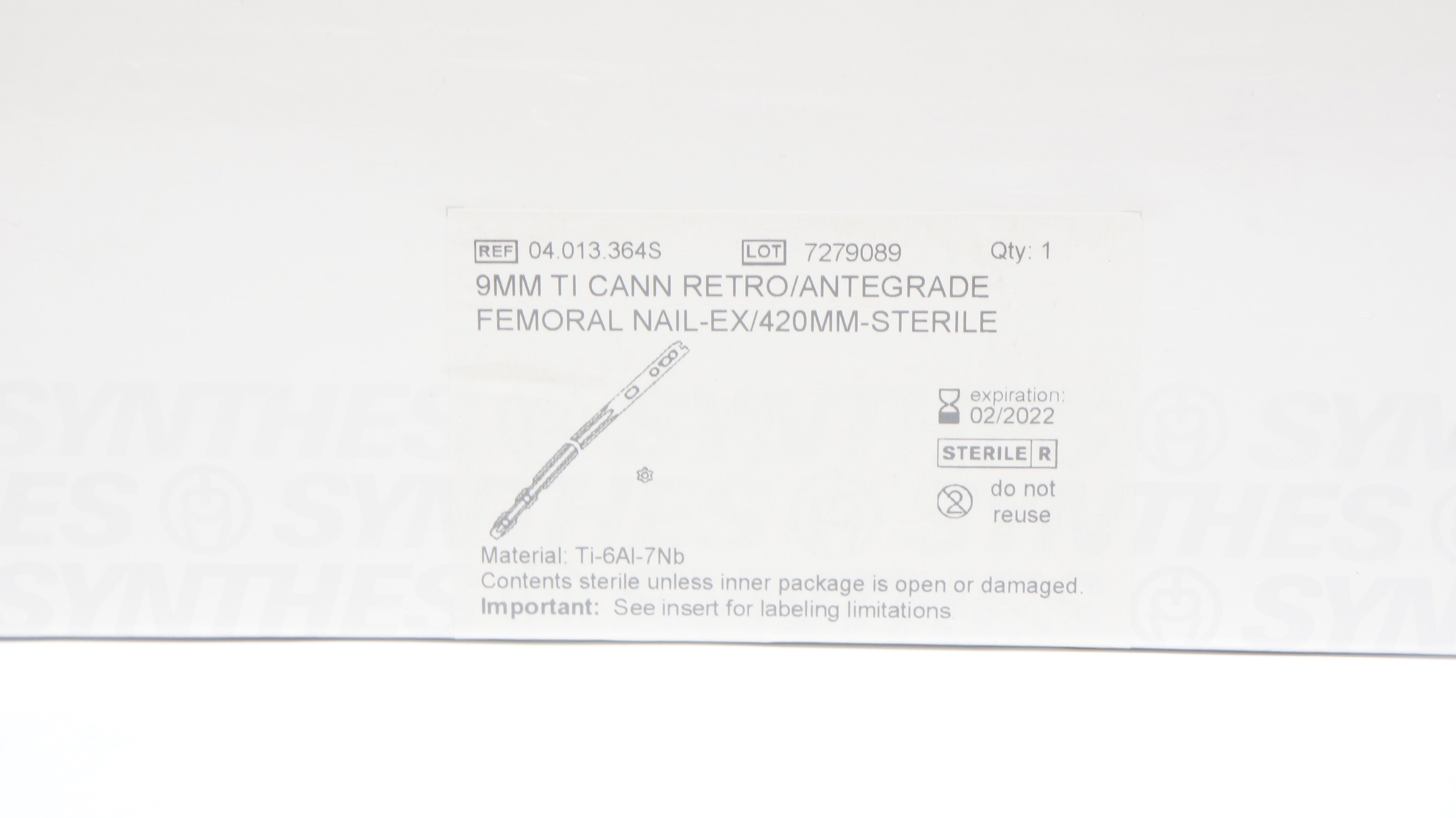 - Synthes 04.013.364S 9mm TI CANN RETRO/ANTEGRADE FEMORAL NAIL-EX/420mm STERILE(x)