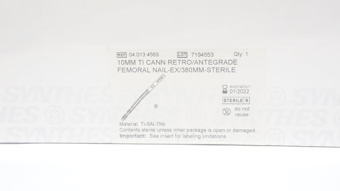 - Synthes 04.013.456S 10mm TI CANN RETRO/ANTEGRADE FEMORAL NAIL-EX/380mm (x)