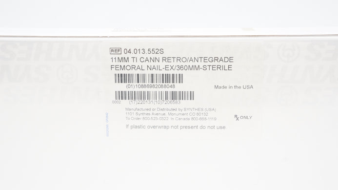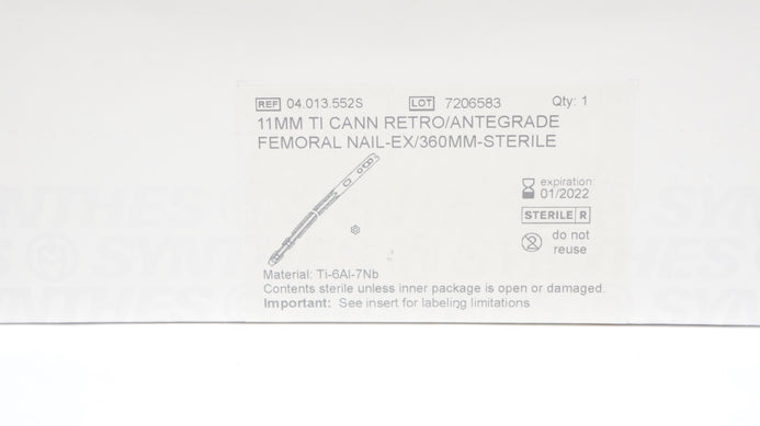 - Synthes 04.013.552S 11mm TI CANN RETRO/ANTEGRADE FEMORAL NAIL-EX/360mm (x)