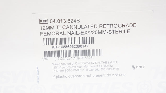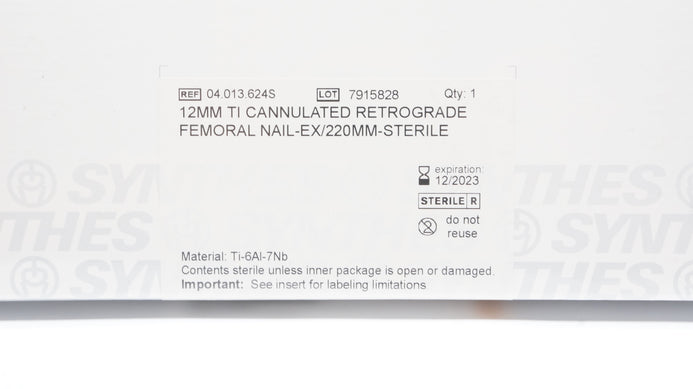 - Synthes 04.013.624S 12mm TI Cannulated Retrograde Femoral Nail-Ex/220mm (x)