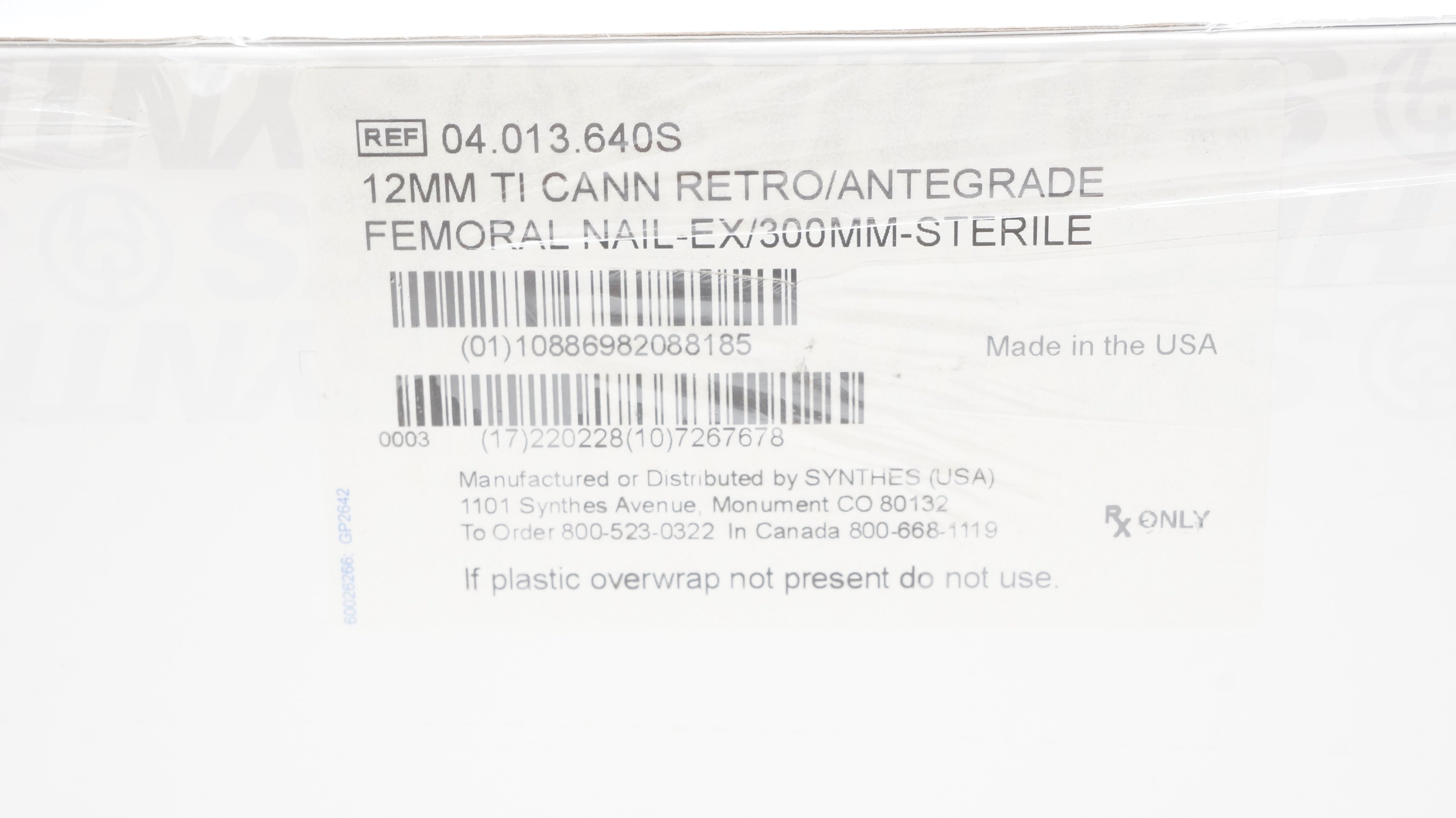 - Synthes 04.013.640S 12mm TI CANN RETRO/ANTEGRADE FEMORAL NAIL-EX/300mm (x)