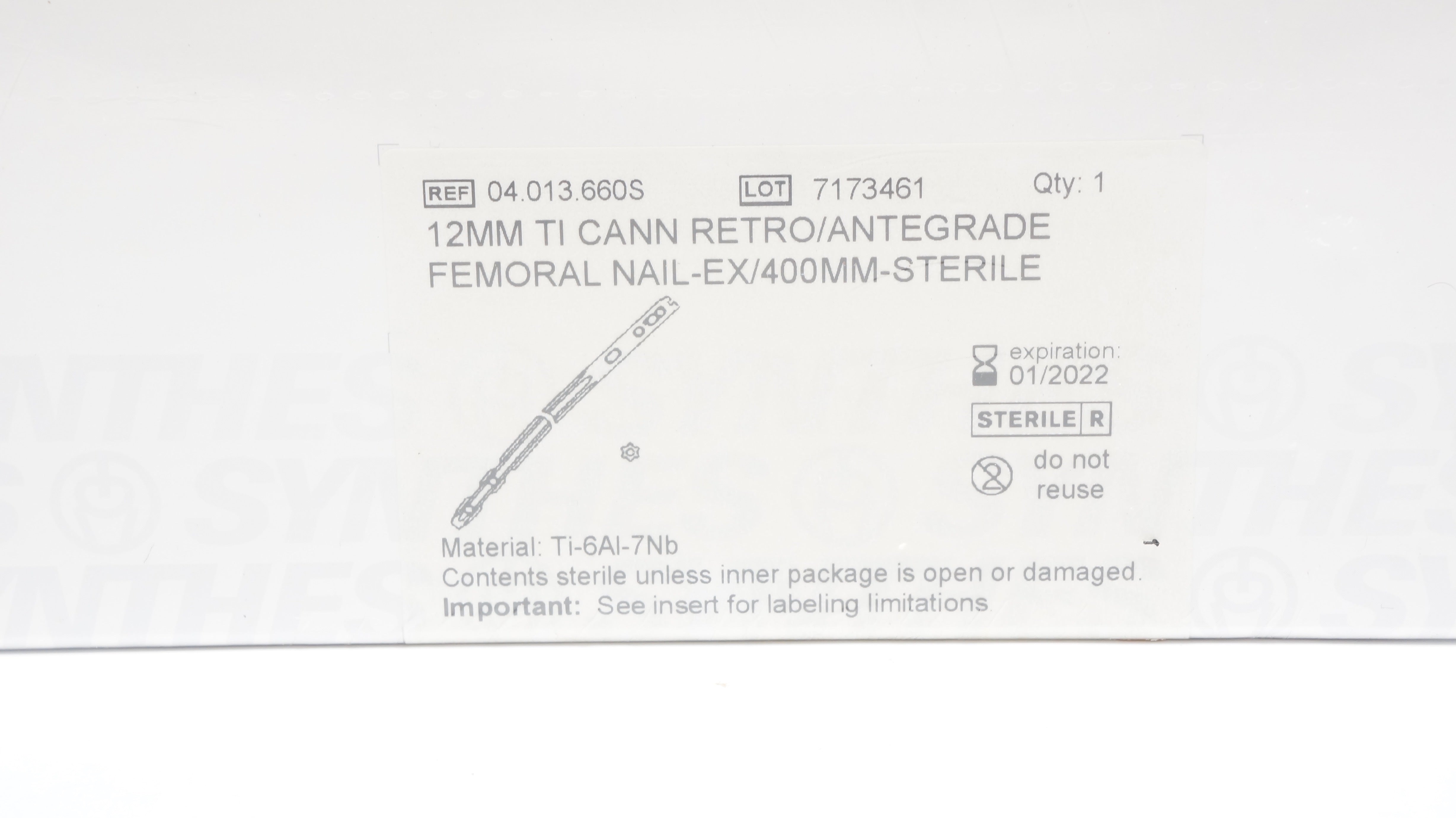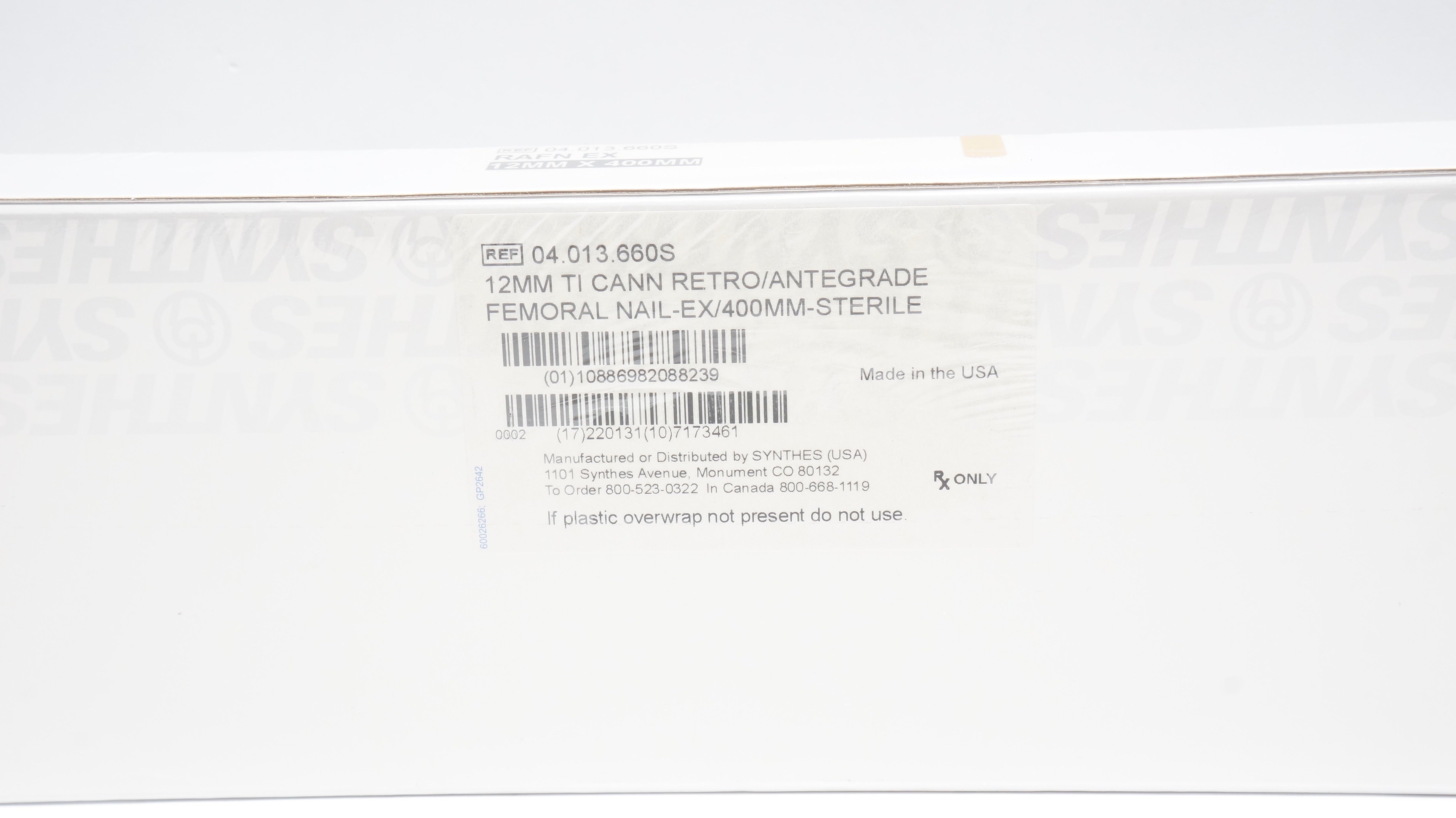 - Synthes 04.013.660S 12mm TI CANN RETRO/ANTEGRADE FEMORAL NAIL-EX/400mm (x)