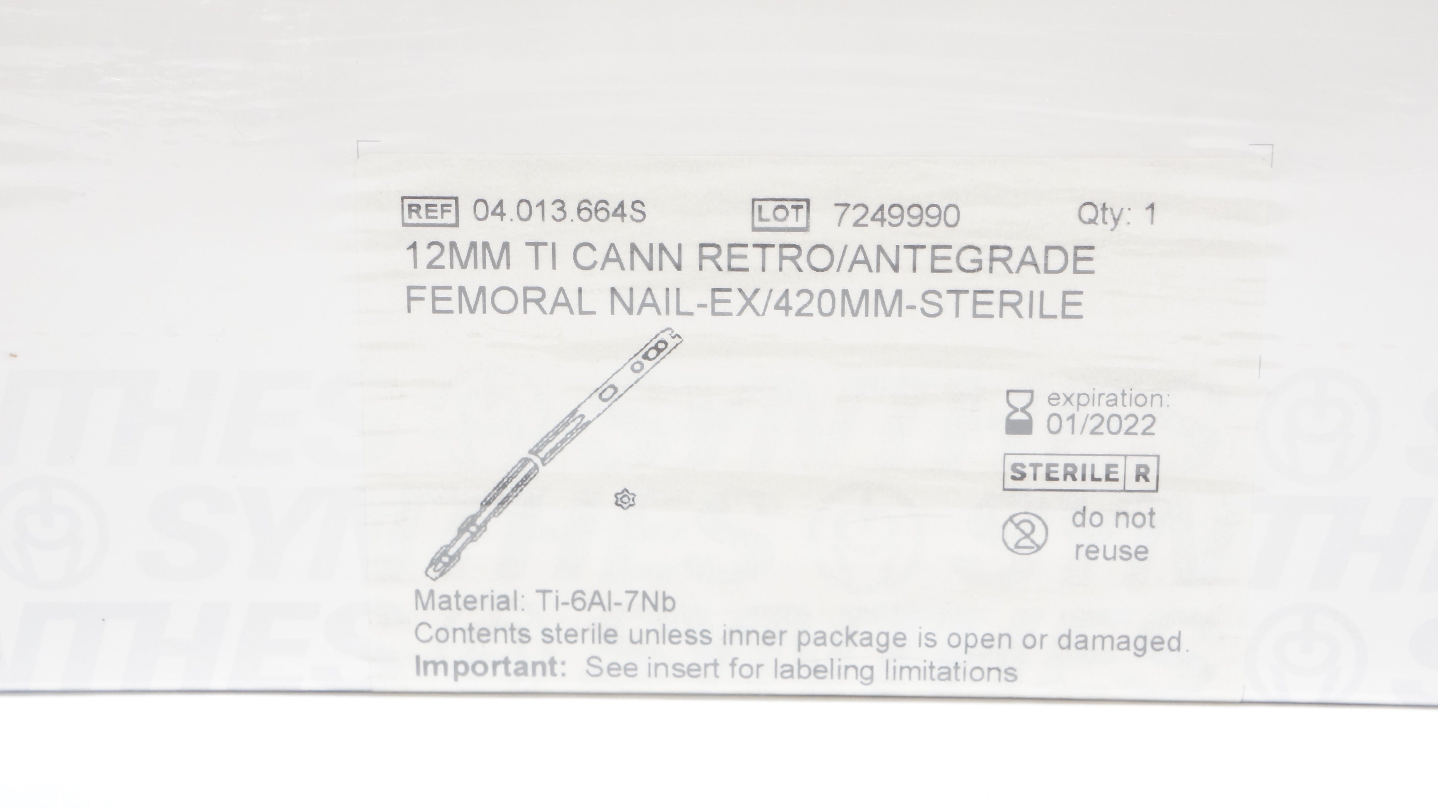 Synthes 04.013.664S 12mm TI CANN RETRO/ANTEGRADE FEMORAL NAIL-EX/420mm (x)