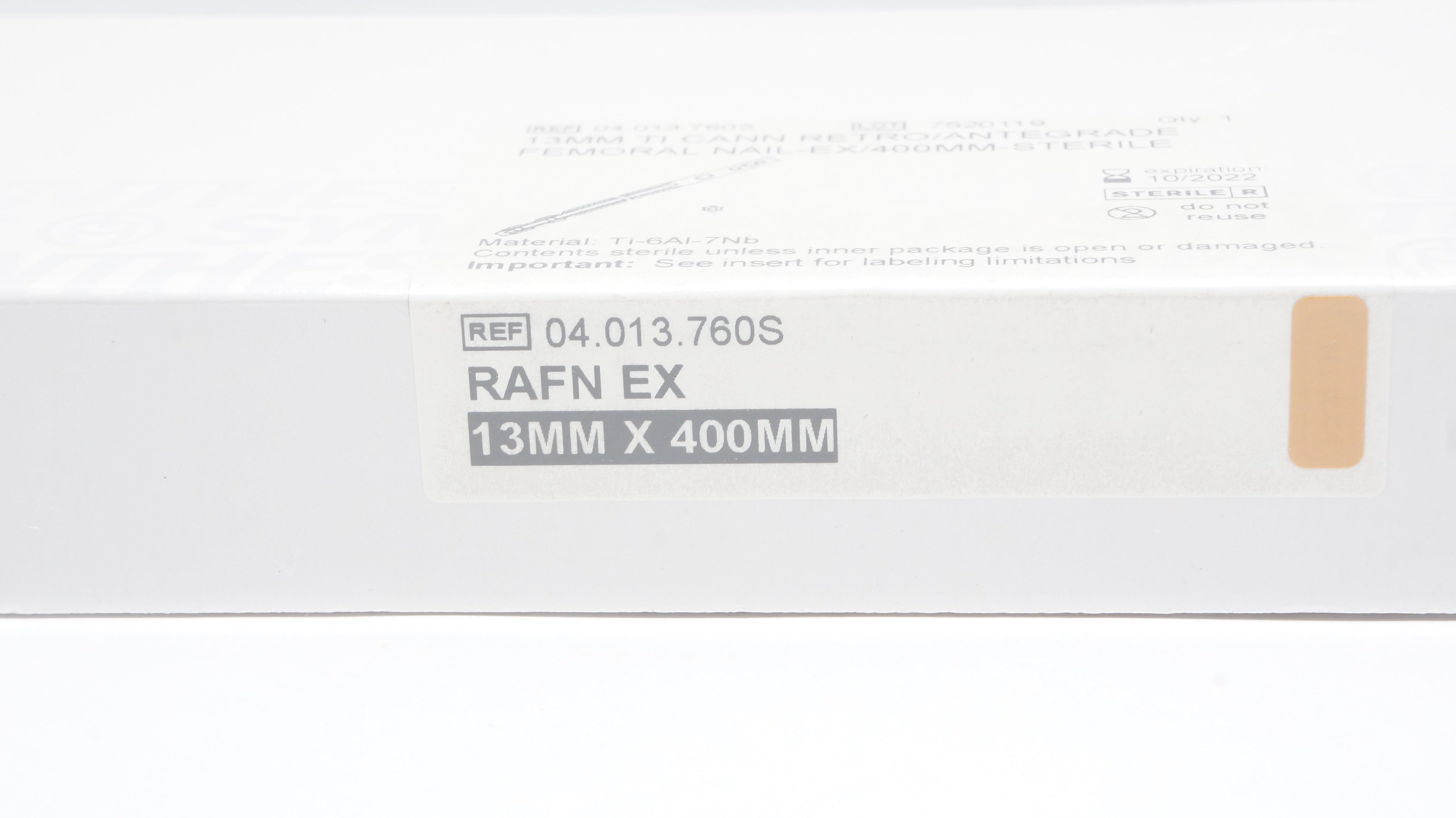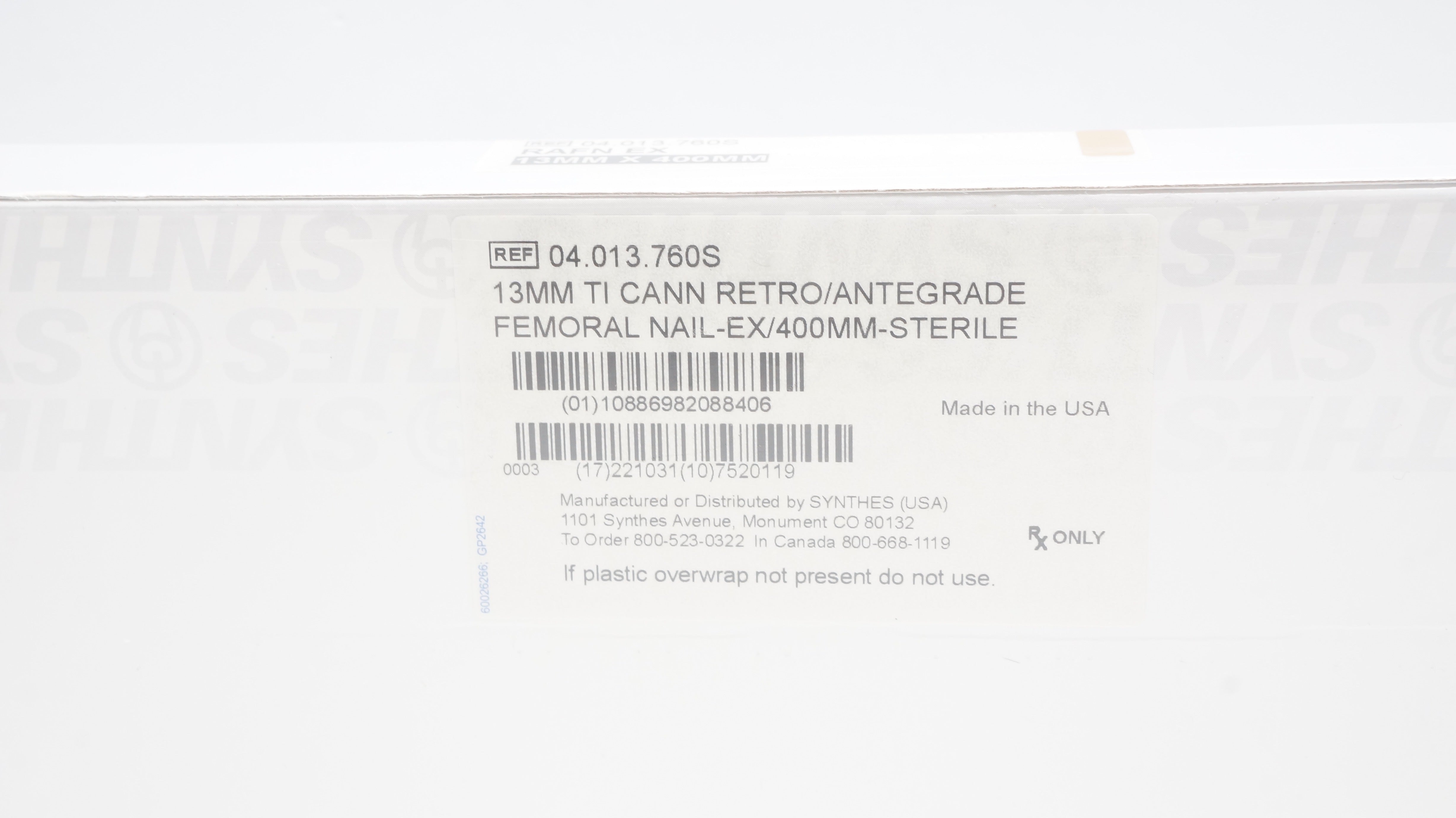- Synthes 04.013.760S 13mm TI CANN RETRO/ANTEGRADE FEMORAL NAIL-EX/400mm (x)