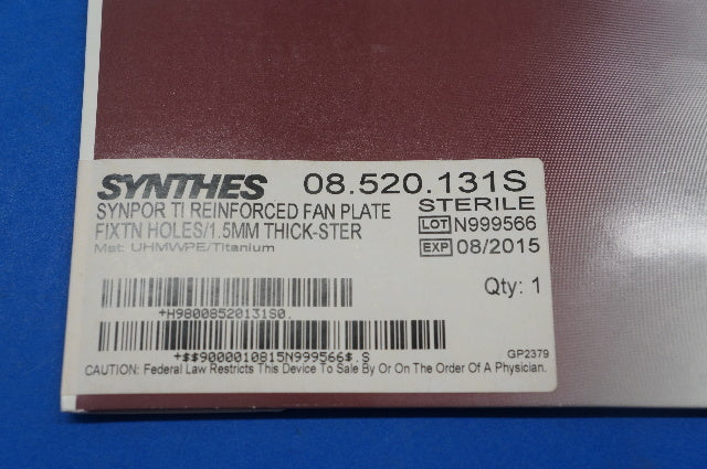 Synthes 08.520.131S Synpor TI Reinforced Fan Plate Fistn Holes/1.5mm Thick-Ster