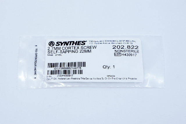 - Synthes 202.822 2.7mm Cortex Screw Self-Tapping 22mm