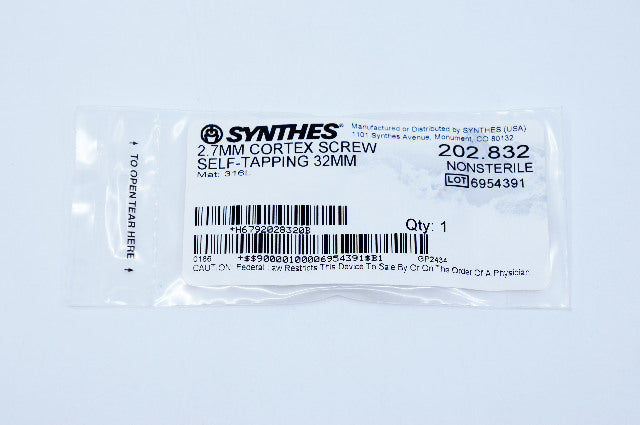- Synthes 202.832 2.7mm Cortex Screw Self-Tapping 32mm