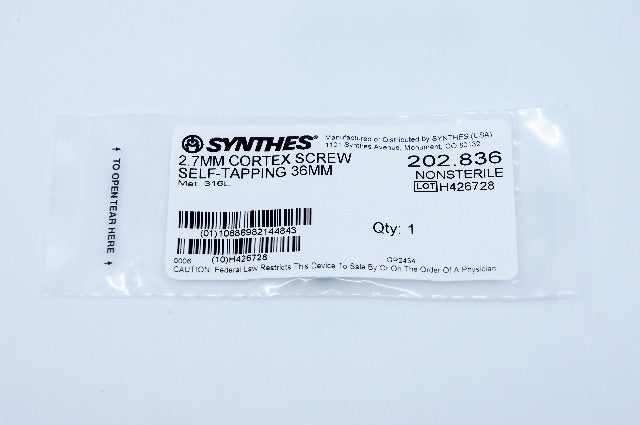 - Synthes 202.836 2.7mm Cortex Screw Self-Tapping 36mm