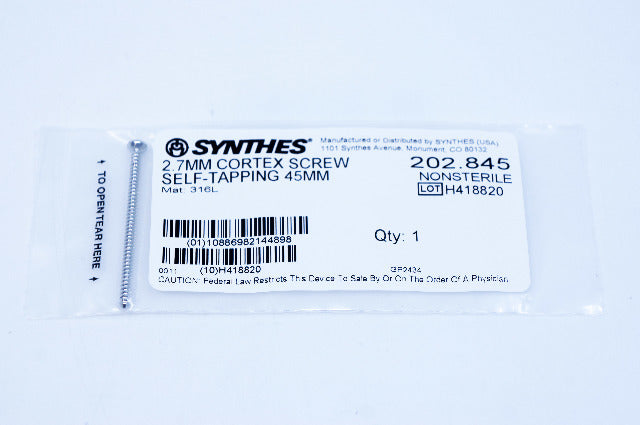 - Synthes 202.845 2.7mm Cortex Screw Self-Tapping 45mm